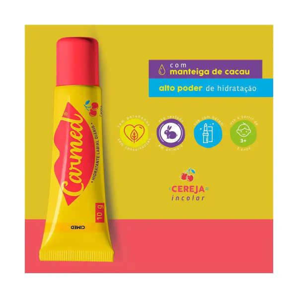 El Hidratante Labial Carmed Cereza Incolor es un bálsamo de uso diario que hidrata profundamente, repara labios secos y deja un brillo natural sin color. Su fórmula concentrada ayuda a restaurar la barrera de los labios, mientras su aroma a cereza lo vuelve irresistible para usar todo el día.