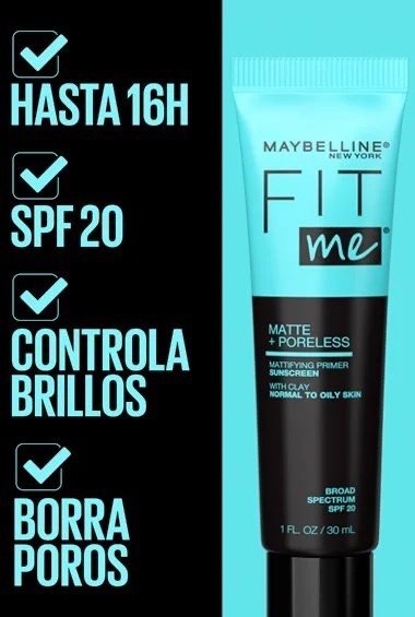 El Fit Me Primer Matificante Matte + Poreless de Maybelline es el paso cero ideal para lograr una piel uniforme y libre de brillo. Su fórmula ligera controla la oleosidad, minimiza la apariencia de los poros y deja un acabado mate que se mantiene durante horas. Perfecto para usar solo o como base para prolongar la duración del maquillaje.